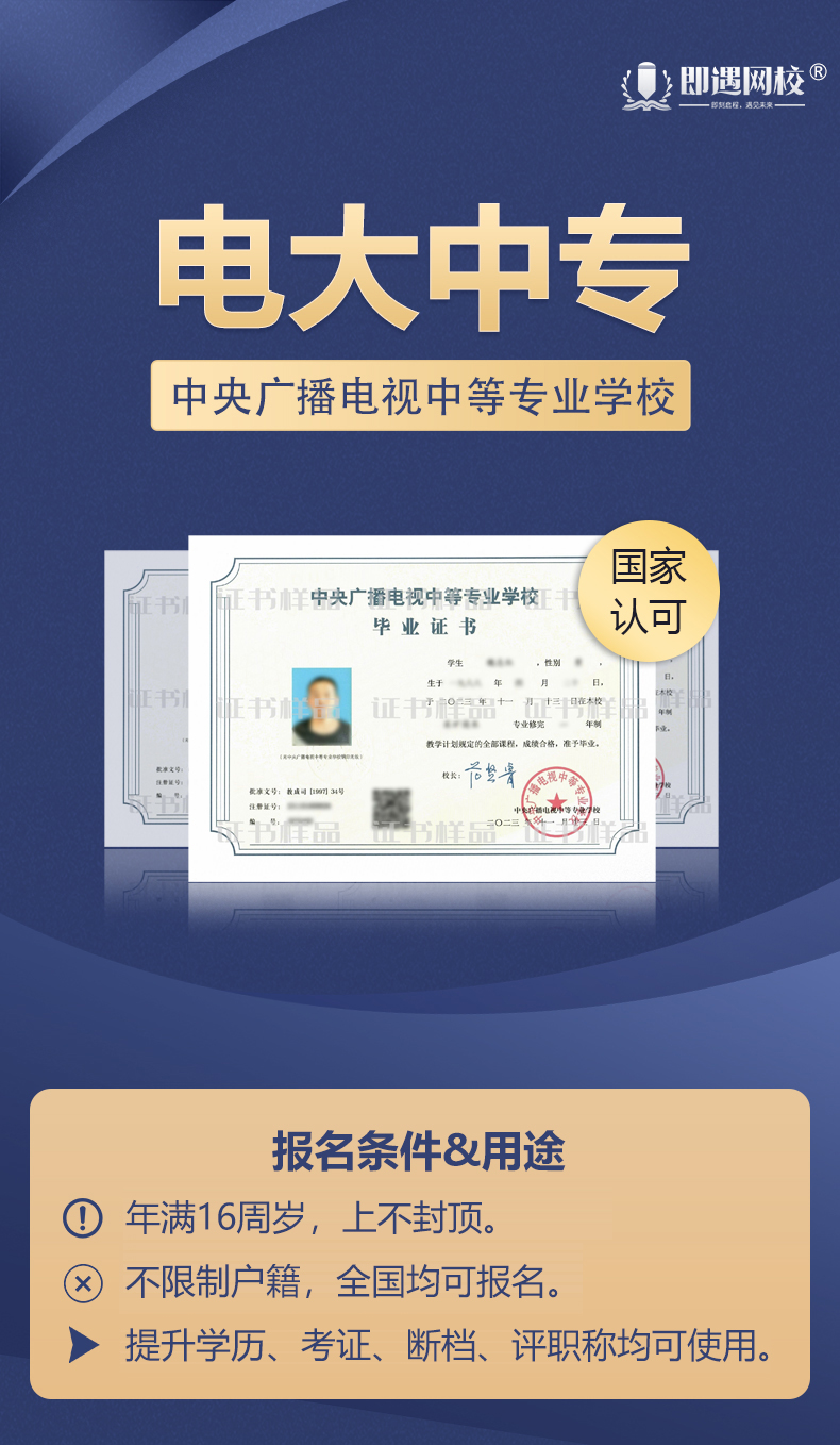电大中专可以自己在官方公众号里提交报名资料,但是没有咨询招生老师的话,自己报考是不能成功入学的。 1、报名方式:电大中专是采用分层办学模式,学校并不直接招收学员。因此,学校的官网并没有报名和缴费的端口。想要报名电大中专,需要在教学中心授权的招生机构进行报名,例如通过“即遇网校”就可以成功报考电大中专。 2、报名流程:①在学校的官方公众号里提交报名资料,②发给招生老师姓名+身份证号,确认好报考信息,③缴纳50%学费;④上报到总校审批;⑤审批无误后在籍;⑥缴纳剩余的学费就可以了。剩下的会有招生老师来对接即可,您只需安心等候5个工作日左右即可。 3、录取条件:电大中专并没有入学考试,只要提交了报名资料,就可以完成报名并直接录取。但是,由于学校并不直接接受个人报名,所以自己提交报名资料是无法成功入学的。 4、学制与毕业:电大中专的学制为一年或两年。学生需要在学籍注册后的10个月内修完最低毕业年限方可申请毕业。学校审核毕业信息并印制毕业证书需要1-2个月的时间。因此,一年制的学生大约一年左右可以完成学业并拿到证书,两年制的学生则需要两年。